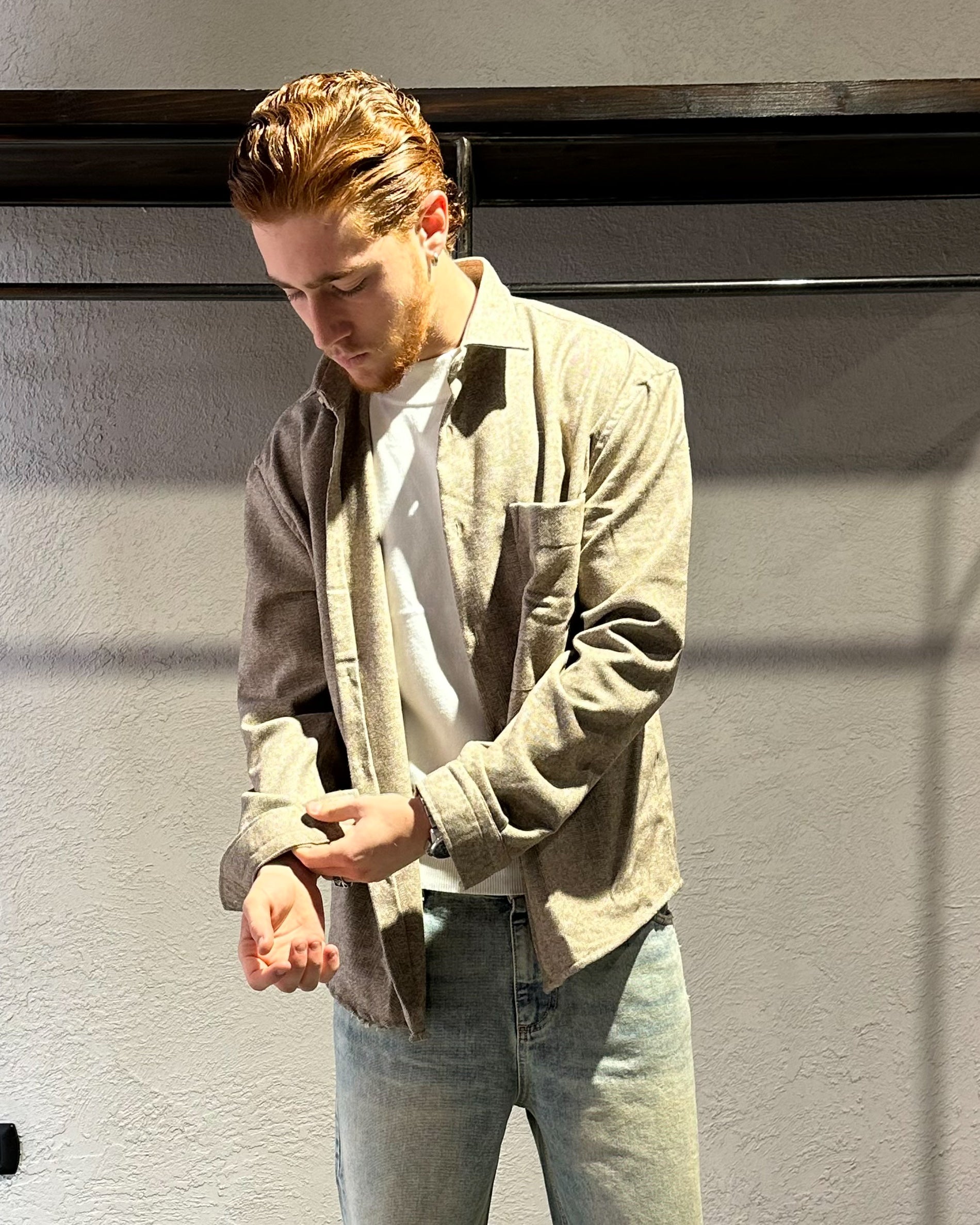 Camicia dal taglio over realizzata in flanella morbida e calda, caratterizzata da una delicata trama spigata che aggiunge profondità e texture al tessuto. Il design essenziale con colletto classico, taschino applicato sul petto e chiusura con bottoni tono su tono la rende un capo versatile, perfetto da indossare sia come camicia che come overshirt.