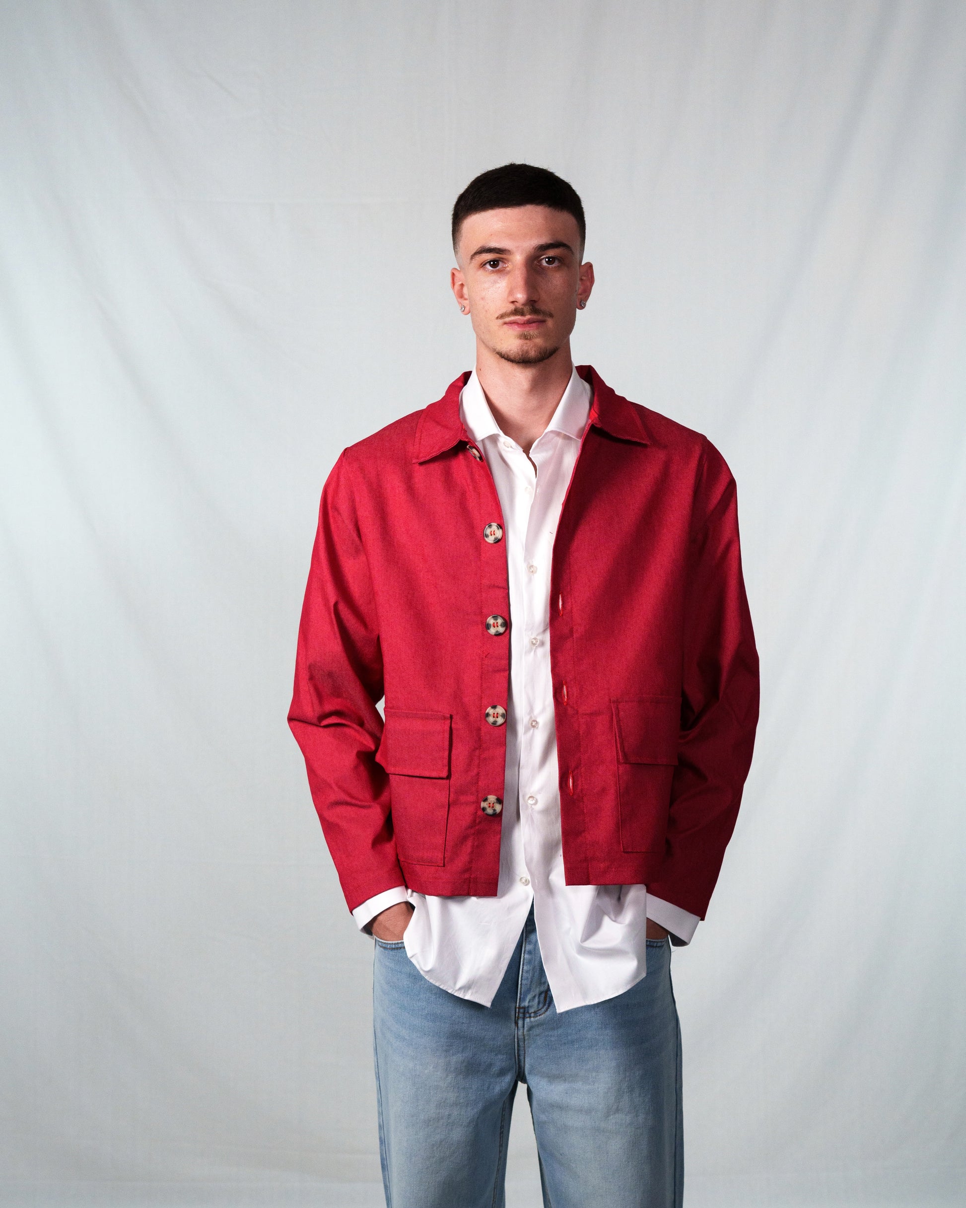Giacca dal taglio moderno con vestibilità crop, realizzata in cotone leggero e confortevole. Caratterizzata da un design essenziale ma d’impatto, presenta colletto classico, chiusura frontale con bottoni a contrasto e due tasche applicate sul davanti. Il retro è liscio, con linea pulita che valorizza la silhouette. Perfetta per dare carattere ai tuoi look casual o smart-casual.
