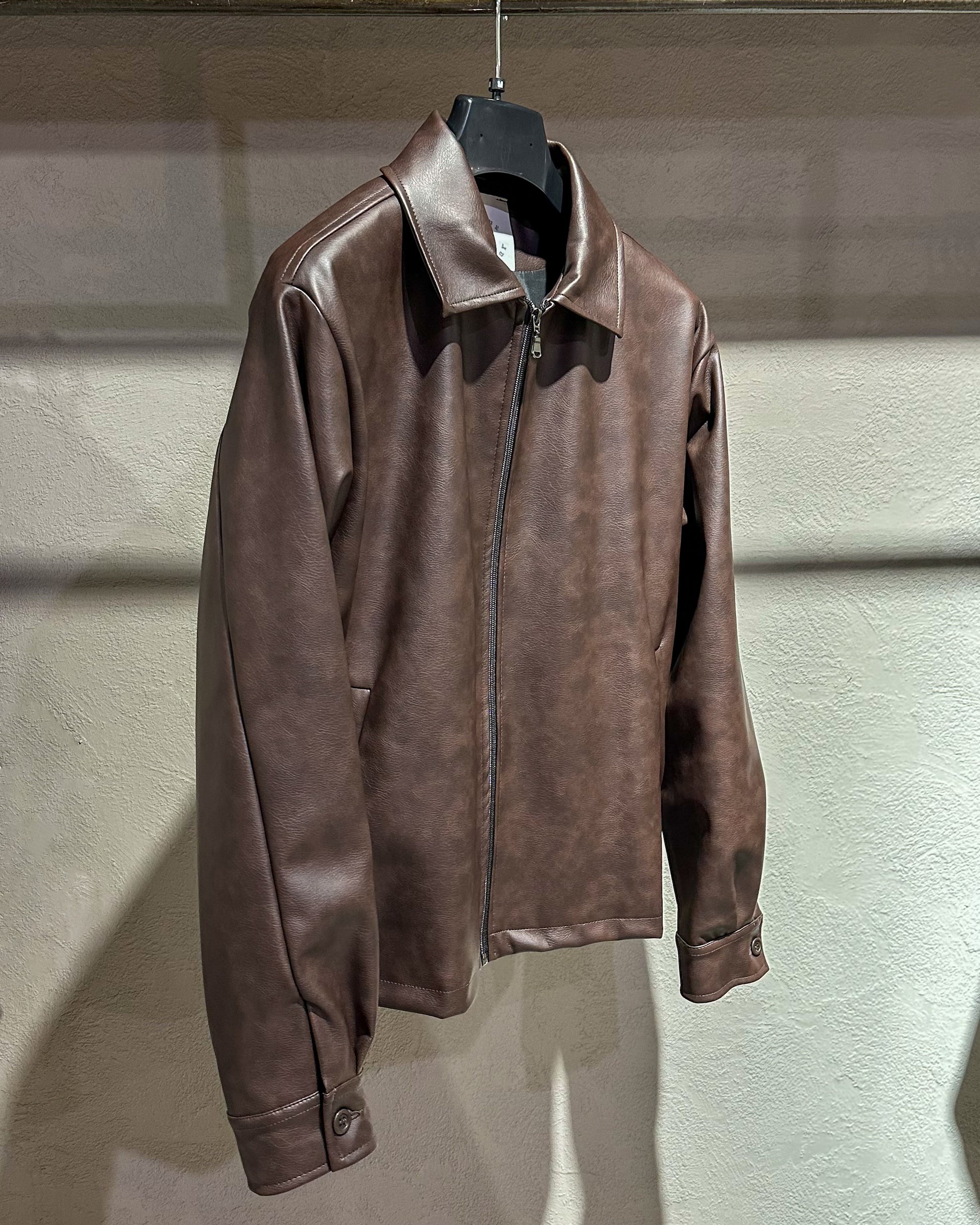 Giacca realizzata in ecopelle effetto liscio, caratterizzata da una linea pulita e contemporanea. Il design presenta colletto classico, chiusura con zip e polsini con bottone, per un look essenziale ma deciso. La texture morbida e il taglio leggermente boxy rendono questo capo perfetto per la stagione autunnale, da abbinare sia a denim che a pantaloni eleganti.